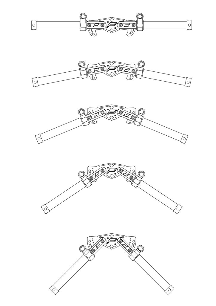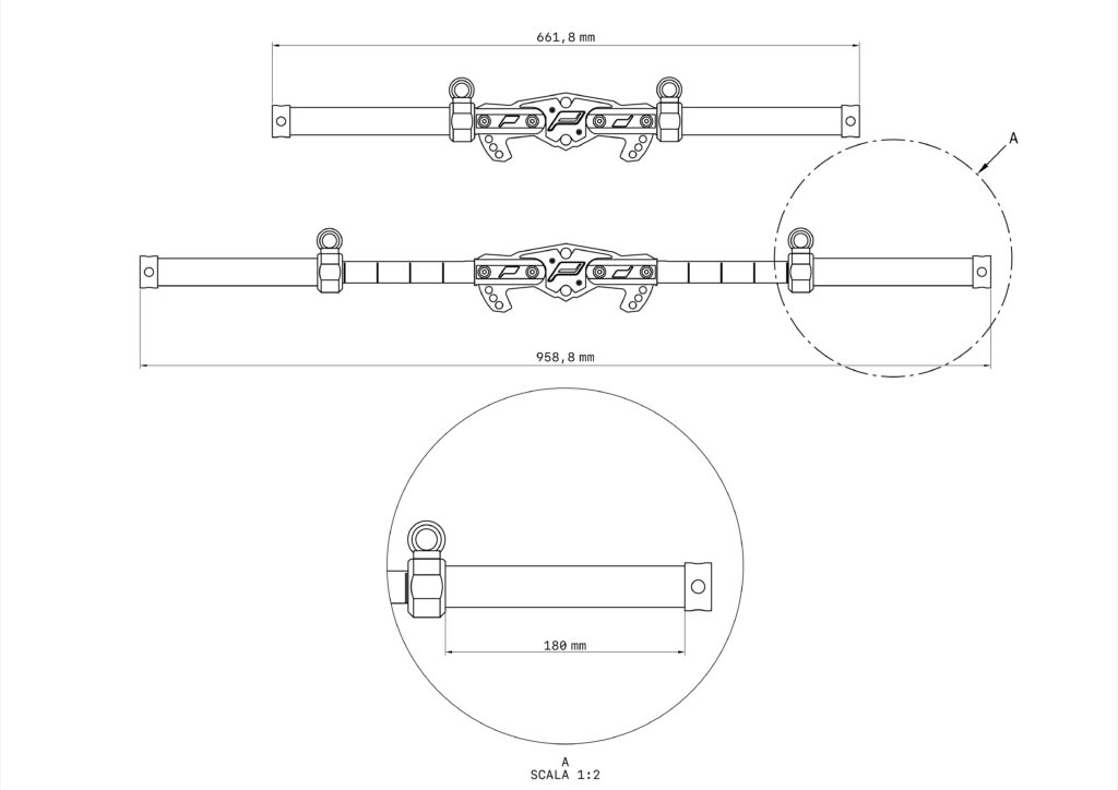 Ciascuna impugnatura può essere inclinata su 5 diverse angolazioni, da 0° a 45° e contemporaneamente può essere traslata longitudinalmente con regolazione continua, BAT, in massima estensione e in inclinazione 0° raggiunge una larghezza totale di quasi un metro.