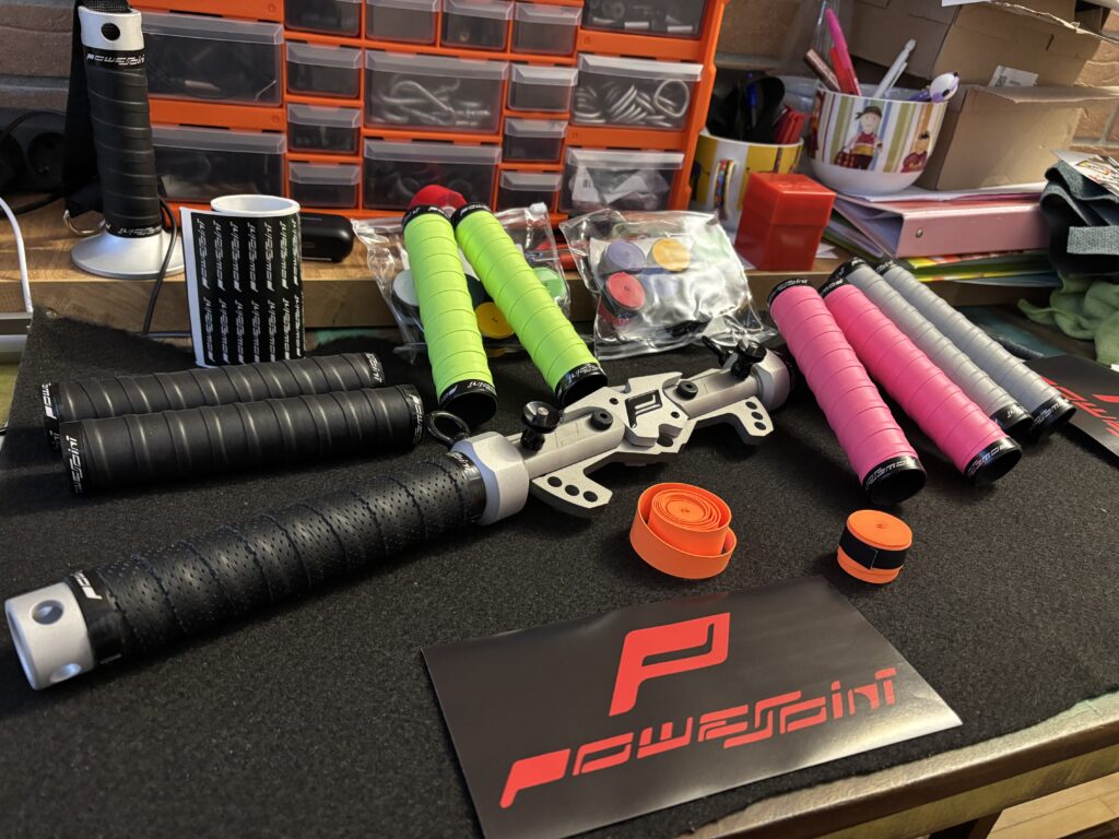 Le impugnature possono ruotare su se stesse, basta inserire l’impugnature in pla rivestita in overgrip antiscivolo e il gioco é fatto!!